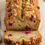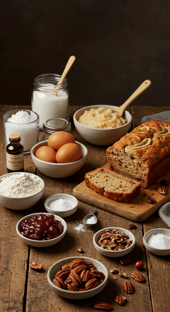 Difficulty level: Easy! If you can mash bananas and mix batter, you’re set. An 8×4-inch loaf pan, mixing bowls, and a whisk or mixer are the main tools, and kids can help stir in cranberries or sprinkle pecans.