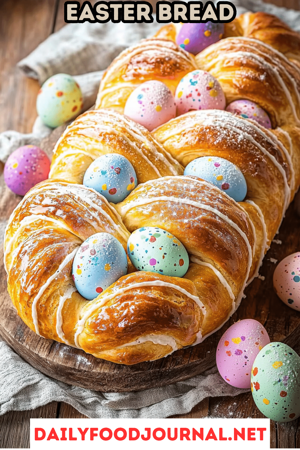 This Easter Bread is a beautiful and delicious centerpiece for any Easter celebration! I love the slightly sweet, enriched dough, the festive braided shape, and the optional colorful dyed eggs nestled within