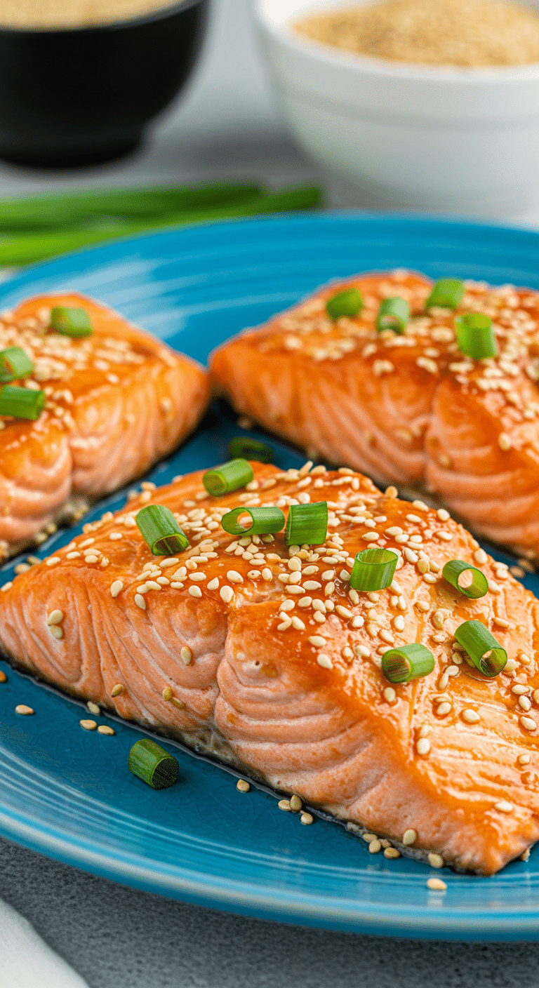 - Serve: Plate the salmon, drizzle with thickened glaze, and garnish with optional chopped scallions. Tip: Spoon glaze generously for extra flavor.