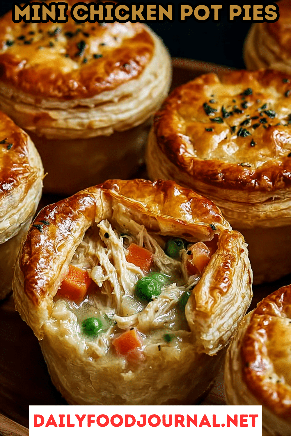 Your Easy Mini Chicken Pot Pies are ready to bring cozy, savory joy to any occasion! With a creamy chicken and veggie filling wrapped in flaky pie crust, these bite-sized pies are perfect for family dinners, parties, or meal prep. Whether you stick with the classic recipe or try a variation, you’re in for a comforting treat that’s as easy to make as it is to love. Grab your muffin tin, bake some savory magic, and enjoy every warm, flaky bite. We’d love to see your creations—share your photos or tips in the comments or on social media! Happy baking!