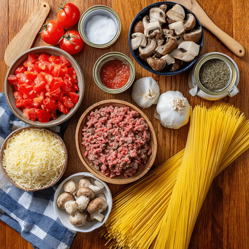 This spaghetti dish comes together with ingredients that create a flavorful, hearty sauce. Here’s what you need and why each matters:
