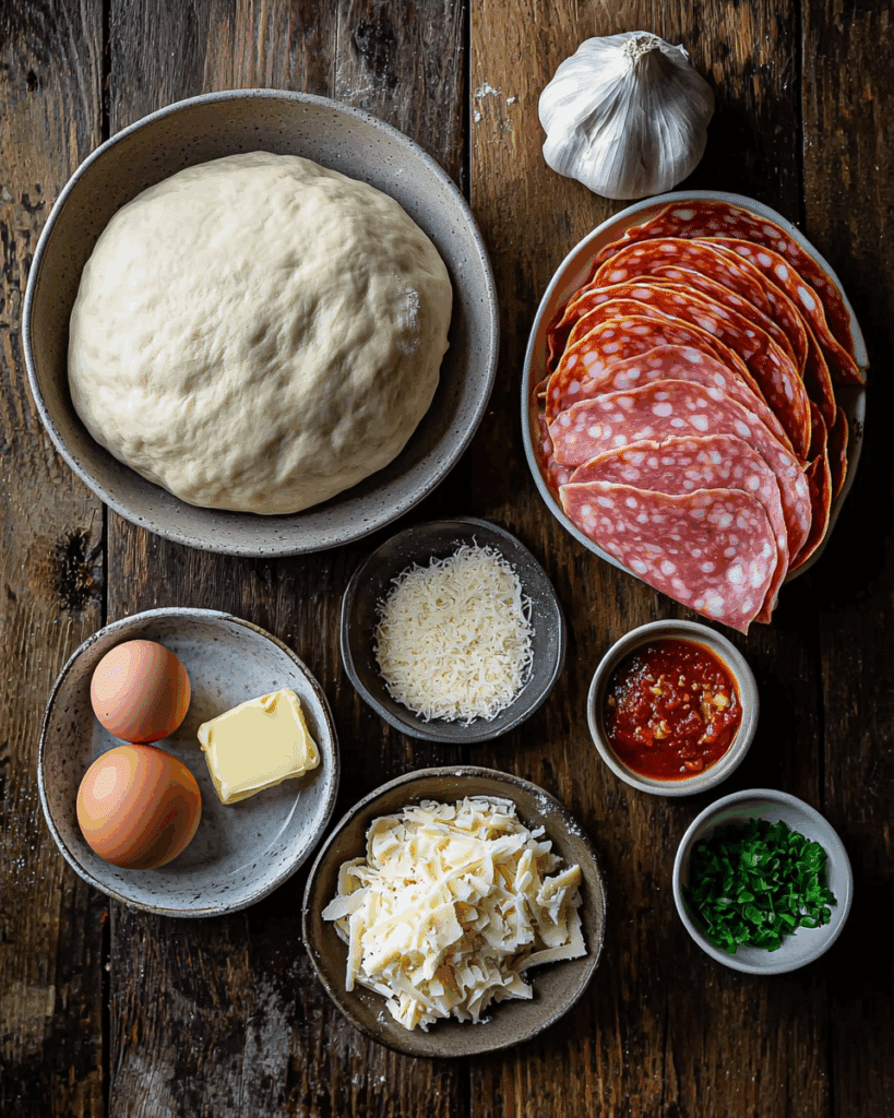 Let’s talk about what goes into this glorious roll. First, the pizza dough. It acts as the vessel that holds all the goodness together. You can use store-bought or homemade, but make sure it’s pliable and fresh.