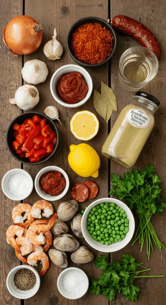 • Saffron (1 pinch, dried): Brings iconic paella aroma and color.