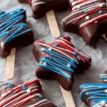 Looking for a dessert that’s as dazzling as a 4th of July fireworks display and sure to wow your guests? These Fourth of July Cheesecake Pops are your perfect treat! With a creamy, no-bake cheesecake center shaped like stars, dipped in rich chocolate, and drizzled with red, white, and blue candy melts, they’re a patriotic delight