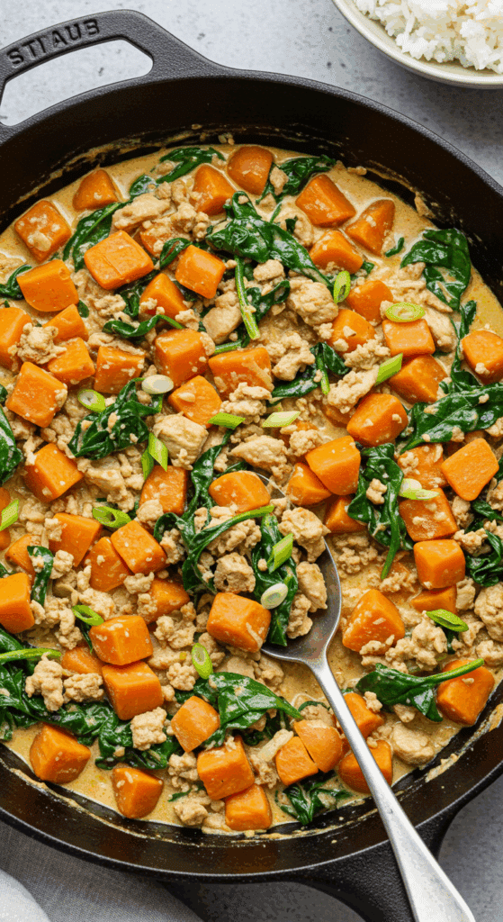 Craving a quick, deeply flavorful dish that’s both comforting and vibrant? Fragrant Coconut Chicken and Sweet Potato, created by Kay Chun, combines ground chicken, tender sweet potatoes, and a creamy coconut milk sauce infused with scallions, garlic, and ginger. Rated 5.0 out of 5 stars from 2,086 reviews, this easy skillet meal is perfect for busy evenings. Ready to fill your kitchen with aromatic bliss? Let’s dive into this delicious recipe!
