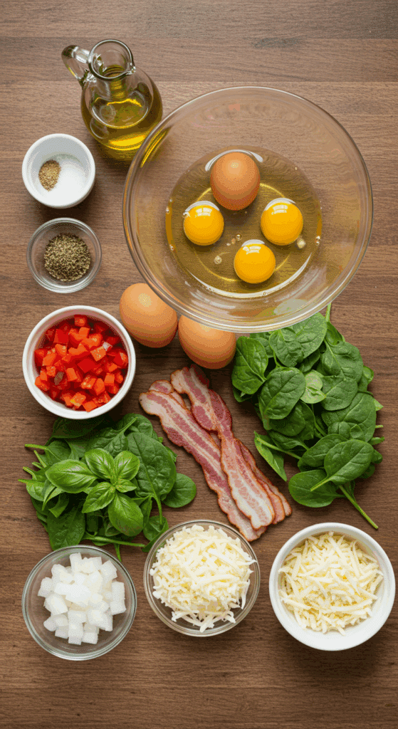 To make Frittata Florentine for 4 servings, you’ll need these key ingredients. Each one adds a layer of flavor or texture to this wholesome dish:
