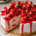 With a buttery graham cracker crust, creamy strawberry-cheesecake filling, and a fresh strawberry topping, this dessert is perfect for summer gatherings, family dinners, or whenever you crave something sweet and cool.