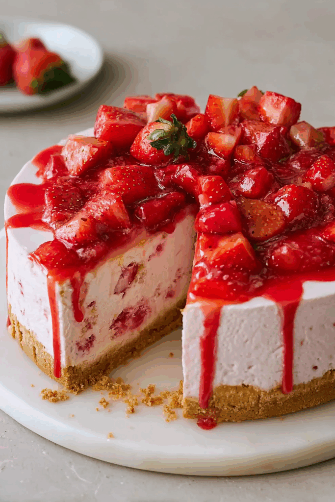 A: It’s a treat, but it uses fresh strawberries, which are packed with vitamins and antioxidants. Opt for low-fat ice cream or a smaller slice for a lighter option. It’s healthier than many baked cheesecakes since it skips eggs and extra sugar.
