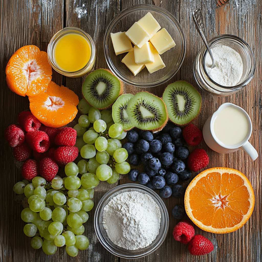 - Assorted Fresh Fruit: The star! Provides color, flavor, texture, and freshness. Choose whatever looks best and complements each other (berries, kiwi, mandarin oranges, grapes, etc.).
