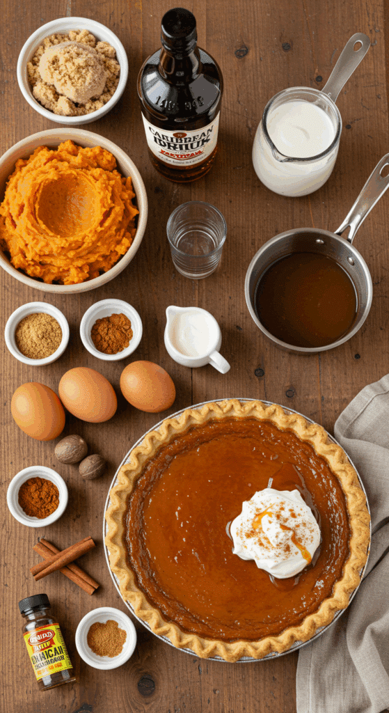 Why These Ingredients Matter: The sweet potatoes provide a creamy, naturally sweet base, while the brown sugar and rum add depth and warmth. The jerk seasoning brings a bold, spicy twist that makes this pie unique, and the heavy cream ensures a velvety texture. The pre-made crust keeps things simple, letting the filling shine.