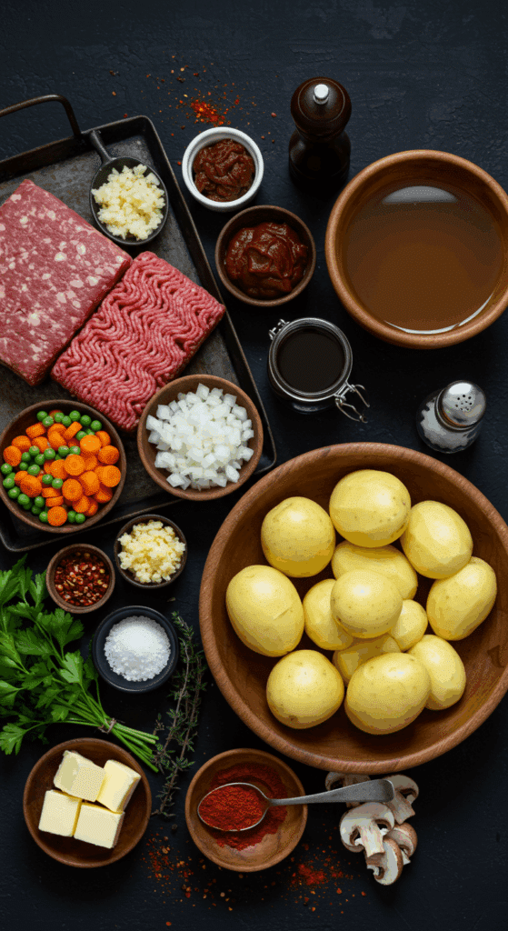 The magic of Gory Shepherd’s Pie lies in simple ingredients that come together for a hearty, spooky result. I’ll list everything for 4 servings, explain why each is key, and offer substitutions for dietary needs or pantry swaps. Let’s build this bloody good dish!