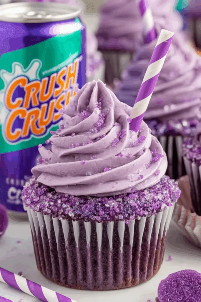 Why They’re Important: The grape soda and drink mix deliver the signature fizzy, fruity flavor, while the white cake mix ensures a tender, fluffy crumb. The purple buttercream adds creamy richness and visual pop, and the sparkling sugar provides a playful, festive finish, making each bite a nostalgic delight.