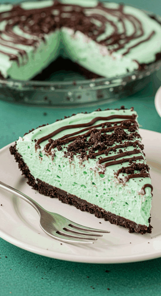 Why These Ingredients Matter: The chocolate cookie crust offers a crunchy contrast, the marshmallow fluff and crème de menthe create a sweet, minty filling, and the whipped cream adds an airy, creamy texture, making this pie a perfect balance of flavors and textures.