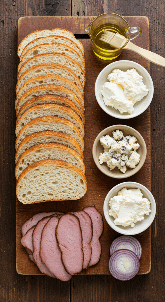 Why These Ingredients Matter: The roast beef provides hearty protein, while the blue cheese and cream cheese create a rich, tangy spread. The red onion adds crunch and sweetness, and the sourdough delivers a crispy, flavorful base, making this a balanced, indulgent meal perfect for sandwich lovers.