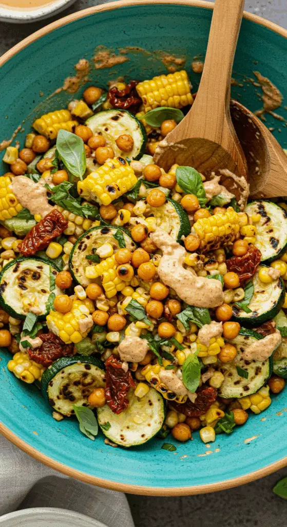 Craving a fresh, flavorful dish that captures the essence of summer? This Grilled Corn & Zucchini Salad with Sun-Dried Tomato Vinaigrette is your perfect choice! Featuring smoky grilled corn, tender zucchini, and a tangy, herbaceous sun-dried tomato vinaigrette, this salad is a delightful mix of sweet, savory, and zesty flavors