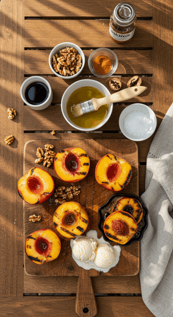 Craving a dessert that’s quick, fresh, and bursting with summer vibes? These Grilled Peaches are your go-to! Juicy, ripe peaches get a smoky char from the grill, paired with a crunchy cinnamon-walnut topping and creamy vanilla ice cream. Perfect for backyard barbecues, warm evenings, or a simple sweet treat, this dessert is as easy as it is delicious. Inspired by your love for fruity, wholesome desserts like Easy Peach Cobbler and Summer Fruit Tart, this recipe is fast, flavorful, and sure to impress. Ready to fire up the grill for a peachy delight? Let’s dive into this simple, summery recipe!