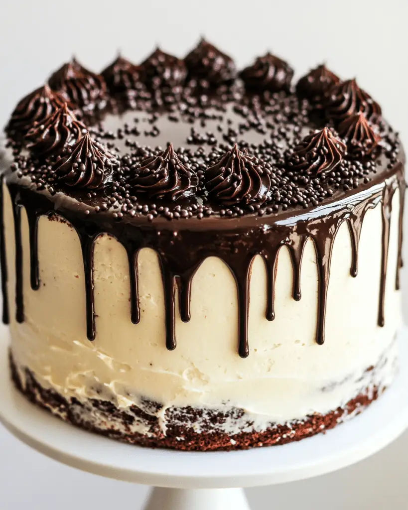 Summary: This recipe creates a deeply chocolatey, moist layer cake using Guinness stout, oil, and sour cream/yogurt in the batter. It’s frosted with a rich American-style buttercream infused with Irish cream liqueur and finished with a dark chocolate ganache drip.