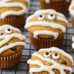 Halloween Blueberry Mummy Muffins are the perfect blend of cozy comfort and spooky fun, starting with tender, berry-packed muffins flavored with apple pie spice for that fall warmth. The real star? The cream cheese frosting piped into mummy “bandages” with blueberries and candy eyes for a playful, eerie topper. With a 4.3-star rating, they’re praised for their moist crumb, tangy frosting, and easy decorating—no artistic skills required. These muffins are beginner-friendly, versatile for parties or breakfast, and come together in under 2 hours.