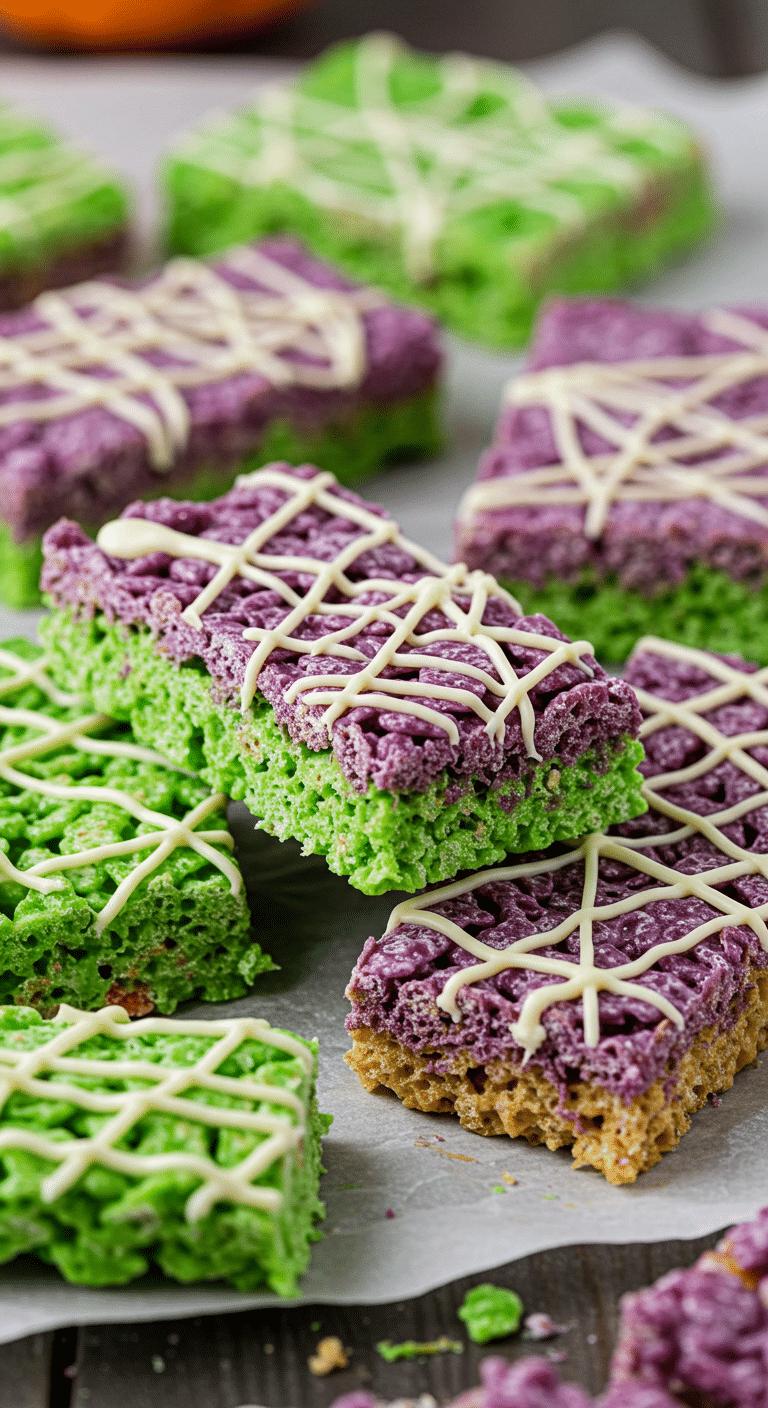 Halloween Crispy Rice Treats are the perfect blend of sweet, crunchy, and creepy. With their quick 30-minute prep, vibrant colors, and fun marshmallow webs, they’re a must-have for any Halloween party. Whether you stick with the classic green and purple swirls or try a new variation, these treats are sure to bring smiles. So grab your marshmallows, get those gloves on, and start creating some spooky sweetness. Share your creations in the comments—what’s your favorite way to make these treats extra eerie?