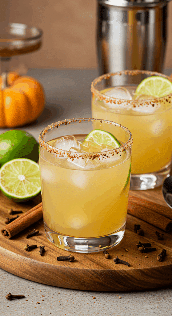 • Why It’s Special: A spiced simple syrup infused with allspice, cloves, cinnamon, and ginger adds warm, fall flavors to the classic margarita’s tequila and lime base. This recipe yields 1 serving but can be scaled up for a crowd, ideal for fall gatherings, Thanksgiving, or cozy nights in.