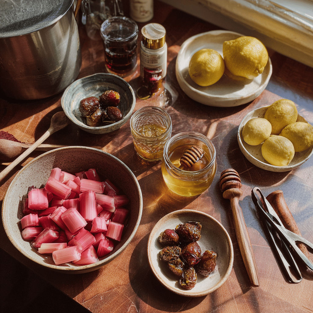 This Honey Sweetened Rhubarb Fig Jam uses a short list of natural ingredients for a rich, flavorful spread. Here’s what you need and why each one matters: