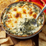 You’ve just made Hot Spinach Artichoke Dip—a warm, cheesy, and irresistible appetizer that’s perfect for any occasion! This oven-baked recipe is easy, flavorful, and so versatile you can make it your own. Whether you scoop it with crackers or add your favorite toppings, it’s sure to be a hit. Grab a cracker, dive into the creamy goodness, and enjoy the savory flavors. What’s your favorite dipper for this dip? Share your ideas in the comments, and happy cooking!