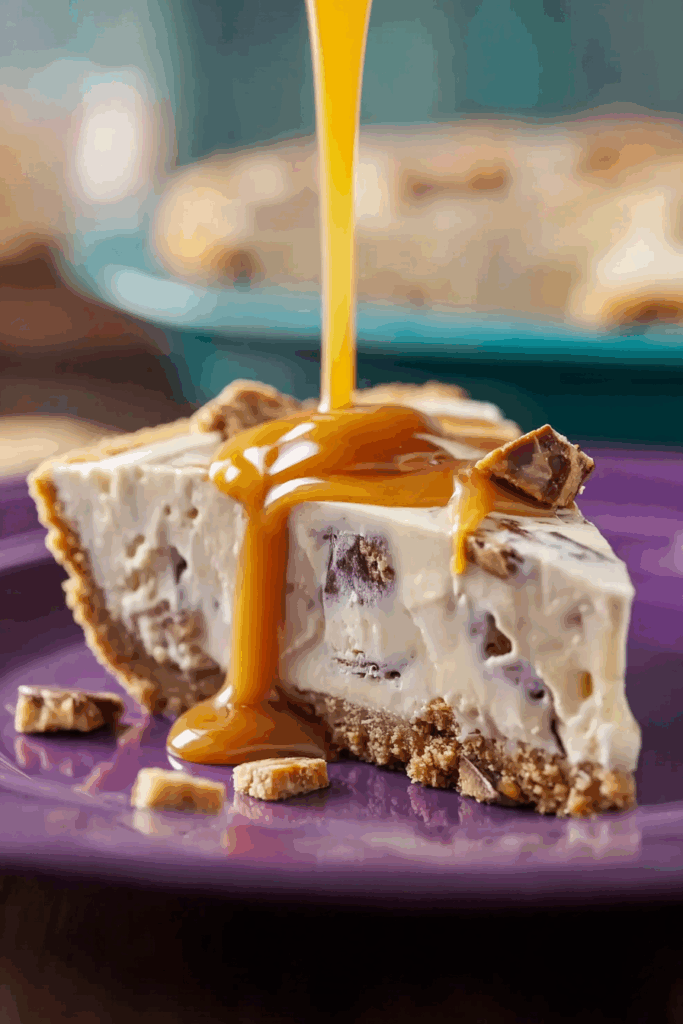 Serving Suggestion: Serve slices on chilled plates with a generous drizzle of sauce and a sprinkle of pecans or candy crumbs for flair. Pair with coffee, hot chocolate, or a berry smoothie for a fun dessert experience!