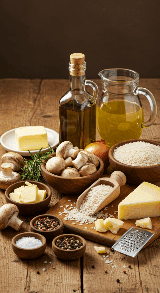 Instant Pot Mushroom Risotto uses simple ingredients for a rich, flavorful result. Here’s what you’ll need for 4 servings: