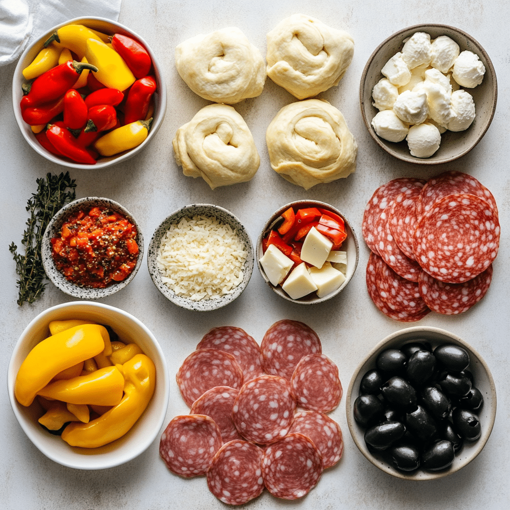 The flavor profile I’m aiming for is a delightful combination of savory, cheesy, and slightly tangy flavors with a hint of spice from the optional banana peppers. The crescent roll dough provides a buttery and flaky base, the ham, salami, and pepperoni add a variety of savory flavors, the provolone and mozzarella cheese melt into a gooey and cheesy filling, and the roasted red peppers add a touch of sweetness and acidity.