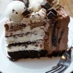 This Layered Ice Cream Birthday Cake isn’t just a dessert; it’s an event! I am absolutely in awe of this creation – a towering masterpiece featuring a cookie crust, layers of vanilla, birthday cake, and chocolate ice cream, a surprise brownie layer, plus a spectacular “crown” made of more ice cream scoops and meringues, all held together with stabilized whipped cream frosting. It’s the definition of a celebration cake