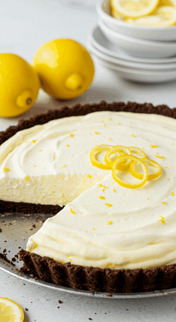 - Why It’s Special: The airy, mousse-like filling, achieved through whipped egg whites and gelatin, paired with a zesty lemon flavor, makes this pie a standout for its light yet flavorful profile.