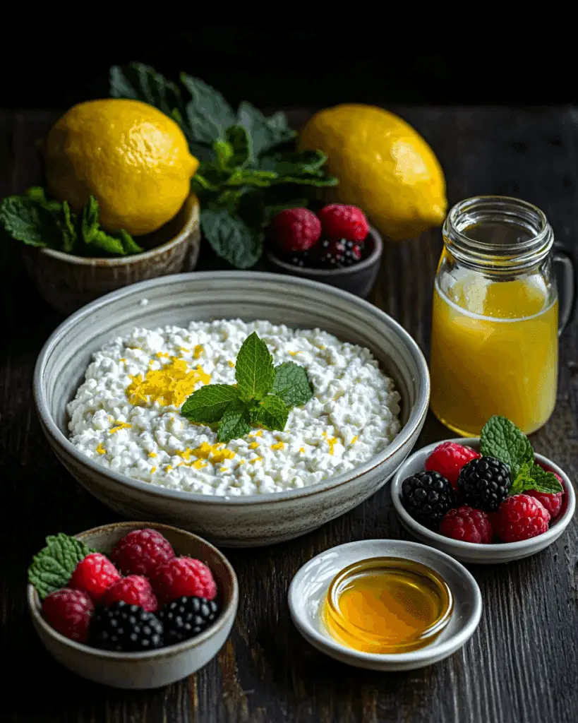 Cottage cheese is the unsung hero of this recipe. When blended, it becomes perfectly smooth and creamy while adding protein and body. Lemon juice brings the tart brightness that makes this dessert so refreshing. Lemon zest adds fragrant, concentrated citrus oils that elevate the flavor. Honey or maple syrup is the sweetener of choice—clean, subtle, and perfectly balanced. Fresh berries and mint leaves are optional but beautiful garnishes that complement the lemon beautifully.