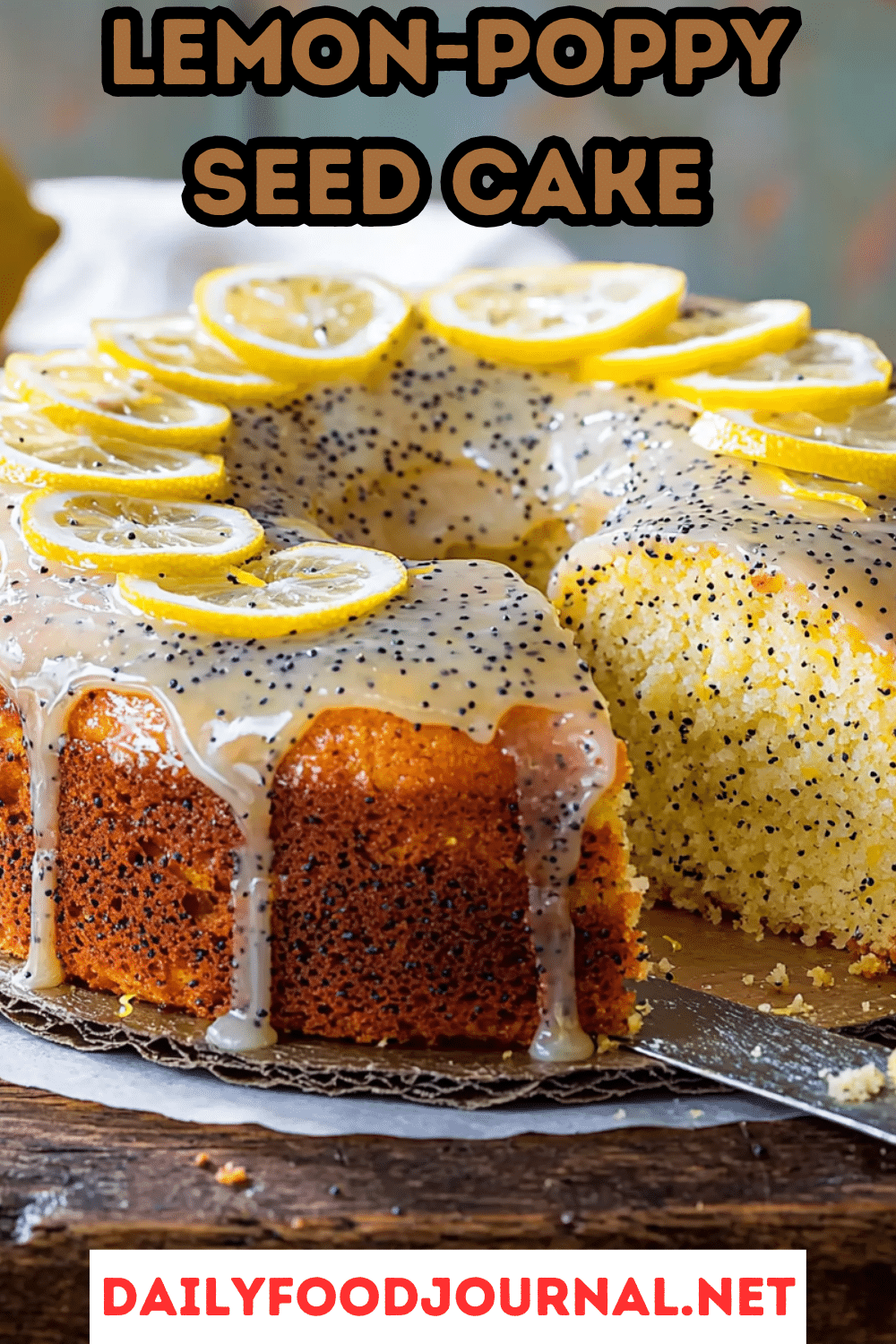 Let the glaze harden for at least 15 minutes before slicing and serving. Enjoy your beautiful and delicious Lemon-Poppy Seed Cake!