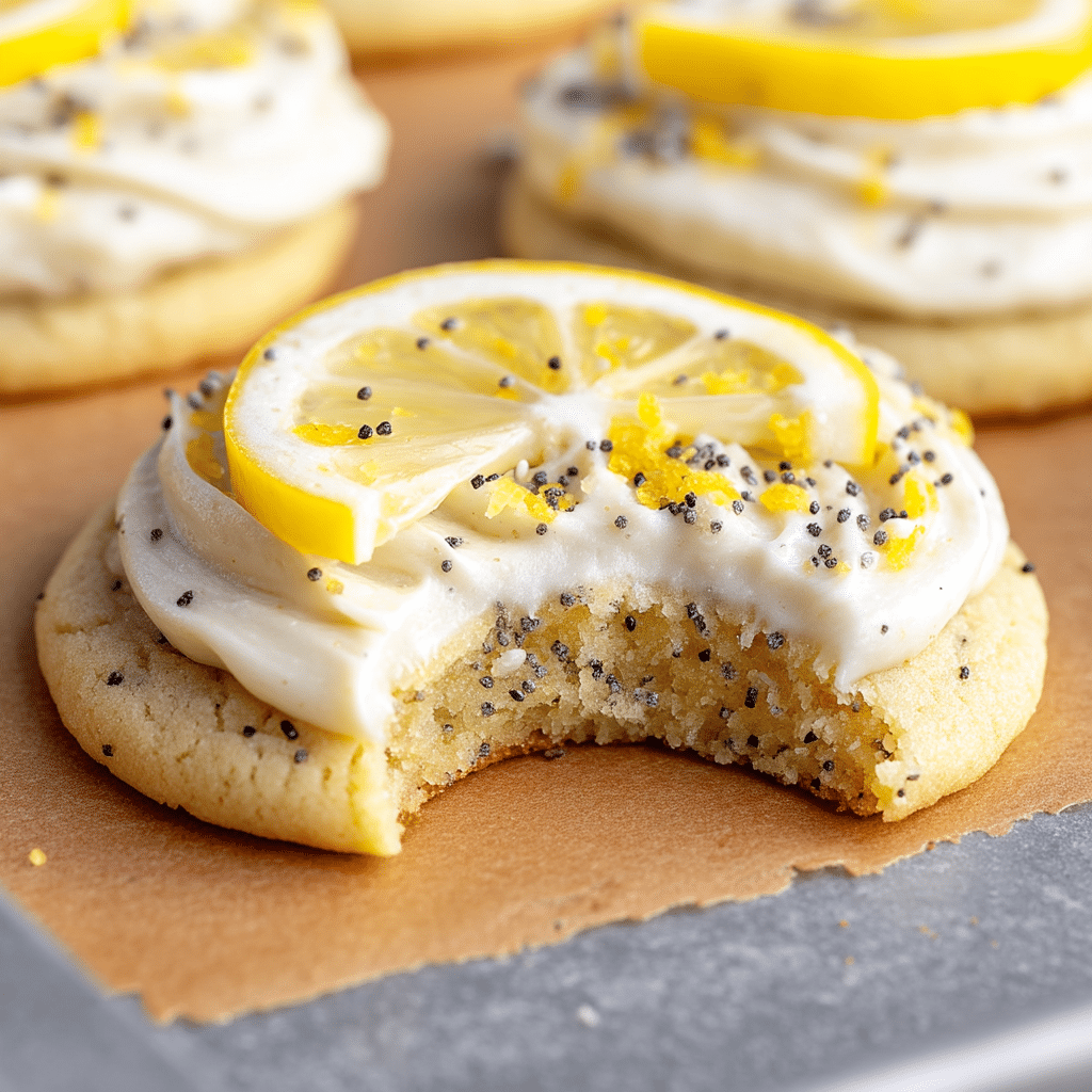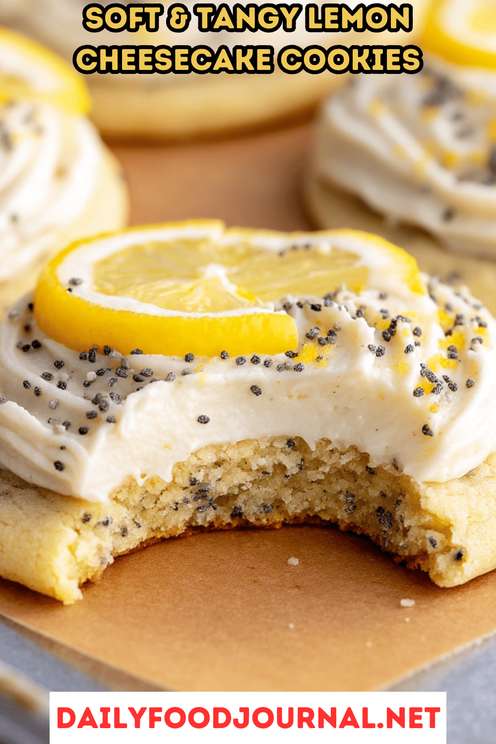 Soft and zesty lemon poppy seed cookies topped with a luscious cream cheese cheesecake frosting. These cookies are light, tangy, and perfect for any citrus lover.
