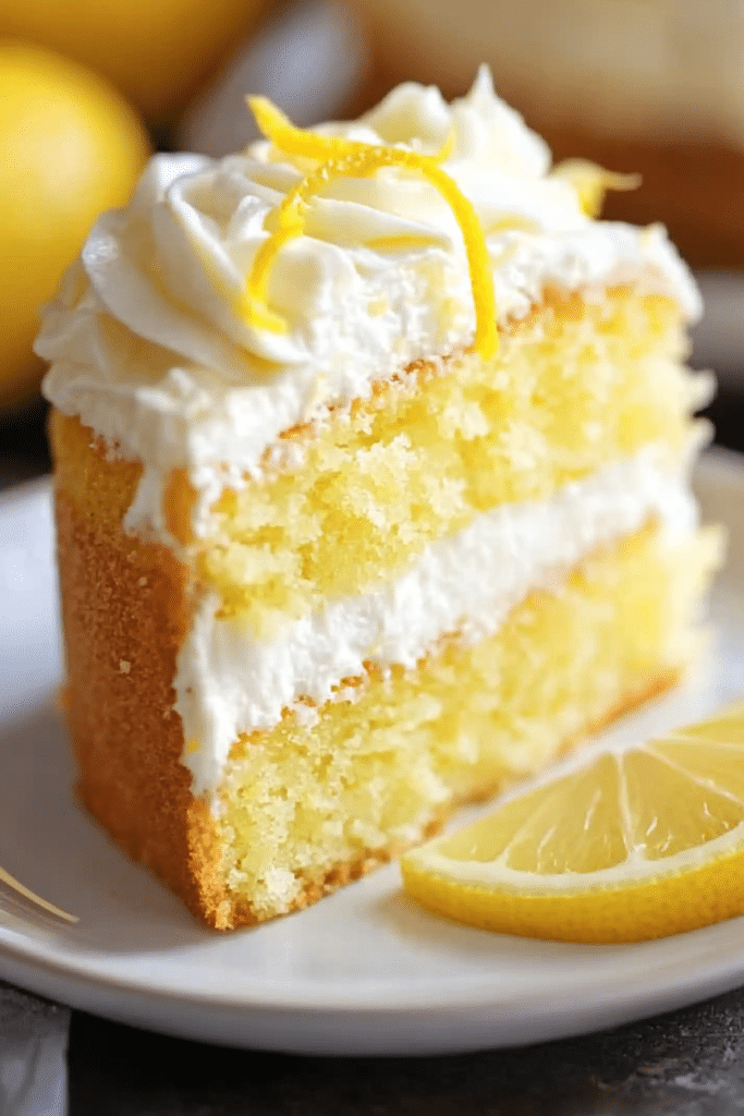 Garnish the cake with fresh lemon slices or additional zest, if desired.