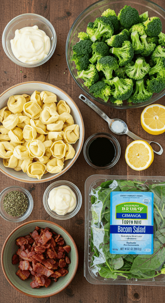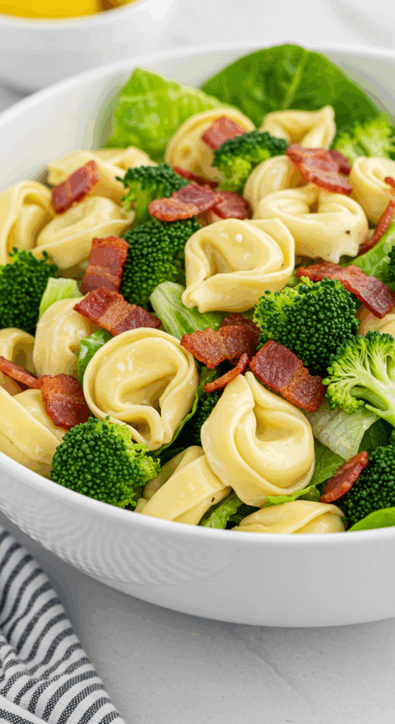 Why These Ingredients Matter: The tortellini and bacon provide protein and richness, while the broccoli and greens add fiber, vitamins, and crunch. The lemony dressing ties it all together with a fresh, tangy flavor, making this a balanced, nutritious salad that feels indulgent yet light.