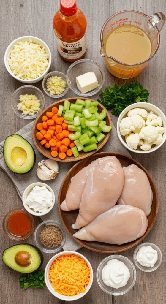 Here’s what you need to make this Low Carb Buffalo Chicken Soup. Each ingredient adds to the creamy, spicy, and savory magic.