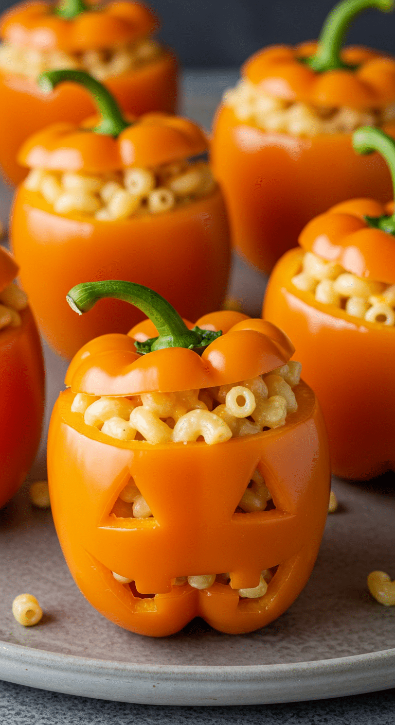 Difficulty Level: Easy—perfect for novice cooks or busy parents! Carving peppers is simple (like a mini pumpkin!), and the mac and cheese comes together with basic stovetop skills. No advanced techniques needed, just a dash of Halloween creativity.