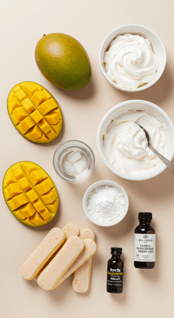 Why These Ingredients Matter: The mangoes bring a sweet, tropical flavor, while the gelatin ensures a perfectly set mousse. Ladyfingers provide structure and crunch, and the whipped cream adds a light, elegant finish.