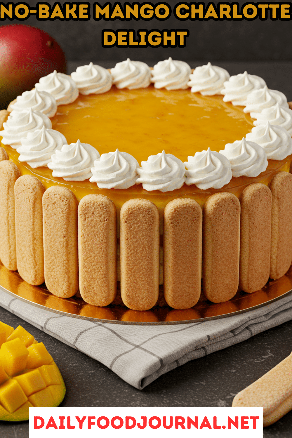 With two main components—Charlotte cake and whipped cream topping—this recipe uses a short list of ingredients to create a vibrant, flavorful dessert. Fresh, ripe mangoes are key for the best taste.