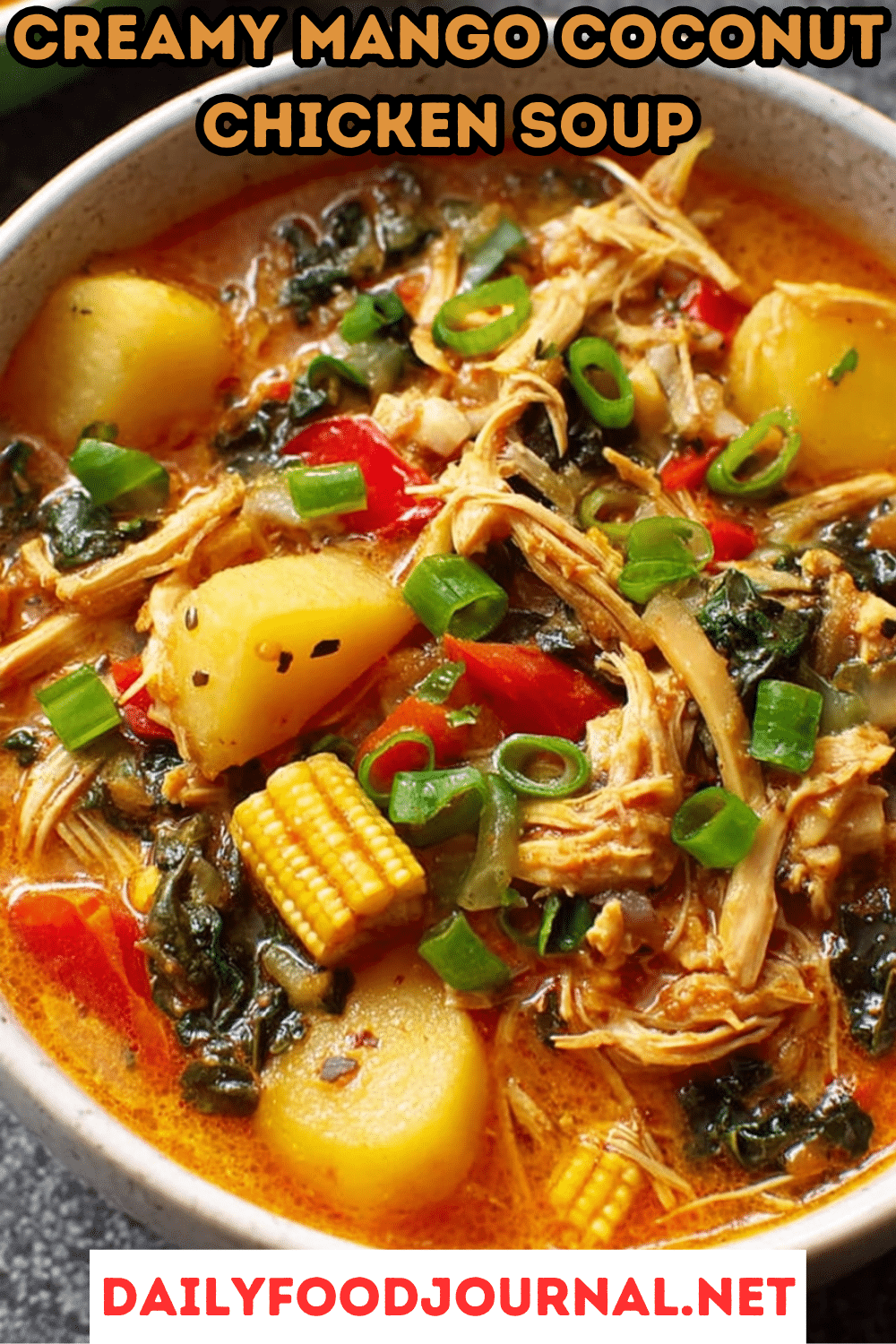 You’ve just made Mango & Coconut Chicken Soup—a creamy, tropical, and hearty dish that’s perfect for any occasion! This slow-cooker recipe is flavorful, versatile, and so delicious it’ll become a go-to for cozy meals, gatherings, or meal prep. Whether you garnish with green onions or add a spicy kick, this soup is sure to impress. Grab a spoon, dive into the vibrant flavors, and enjoy the island-inspired warmth. What’s your favorite soup topping? Share your ideas in the comments, and happy cooking!