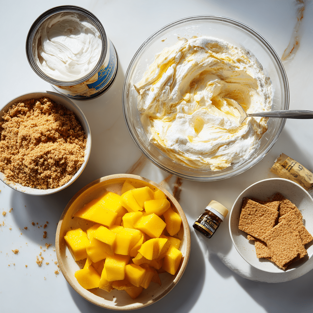 This mango float uses just five ingredients to create its creamy, fruity layers. Here’s what you need and why each one matters: