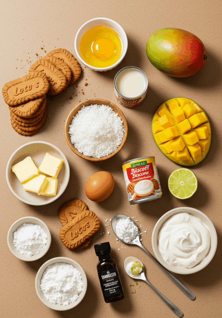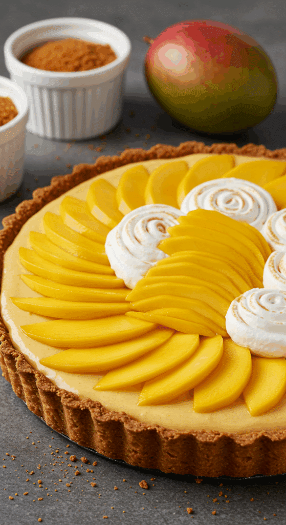Why These Ingredients Matter: The Biscoff crust offers a spiced, crunchy foundation, the mango custard delivers creamy tropical flavor, and the whipped cream and fresh mango slices add lightness and elegance.