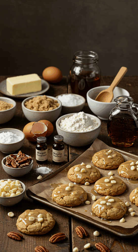 What makes Maple Cookies so special? These delightful cookies combine a soft, buttery dough infused with maple flavor, studded with creamy white chocolate chips and crunchy pecans, and finished with a sweet maple glaze. Baked on simple baking sheets, they’re perfect for gatherings, bake sales, or gifting. The recipe is beginner-friendly, kid-approved for fun tasks, and adaptable for dietary needs, yielding 5 dozen cookies (60 cookies).