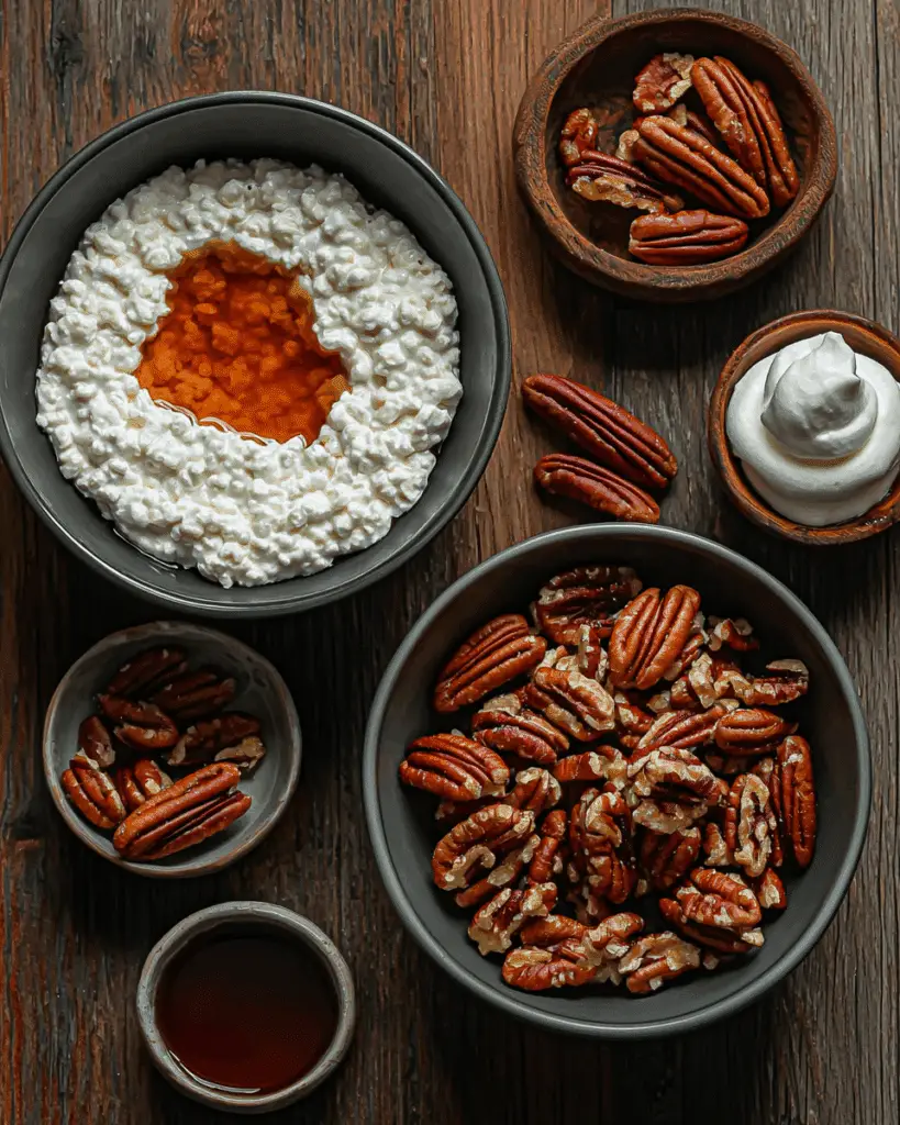 Cottage cheese is the creamy foundation here—it blends into a smooth, thick base and adds protein without heaviness. Maple syrup is the sweetener and flavor booster, giving the mousse that unmistakable maple flavor. Vanilla extract enhances everything and brings balance. Chopped pecans provide the crunch and richness that take this from good to unforgettable. A little whipped cream on top and extra pecans make it look as good as it tastes.