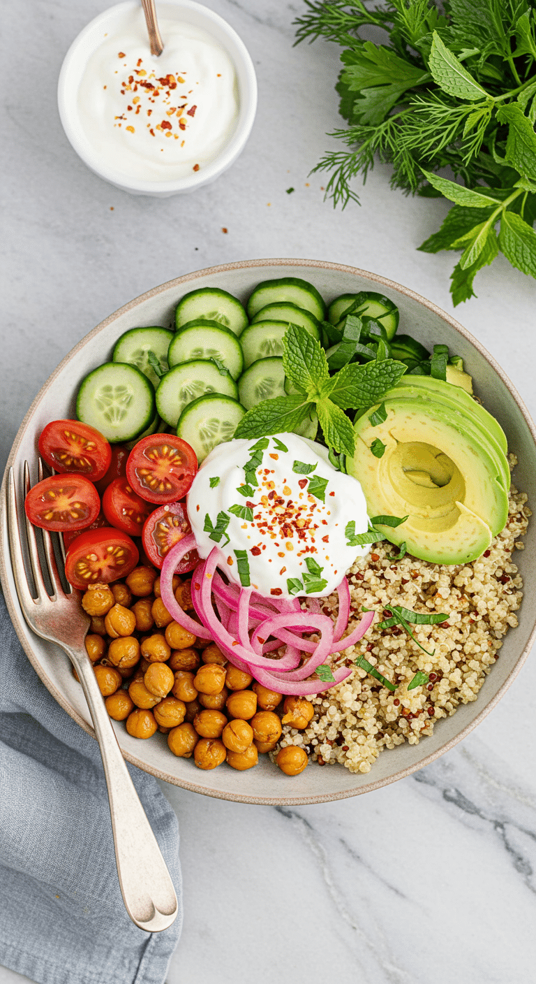You did it! From that first curious question to a vibrant Mediterranean Quinoa Bowl, you’ve got a recipe that’s quick, healthy, and oh-so-versatile. With its fluffy quinoa, smoky chickpeas, fresh veggies, and creamy yogurt sauce, it’s perfect for lunches, dinners, or impressing friends. So grab your ingredients, build your rainbow, and dig in. Share your favorite twists in the comments—I’m all ears! Happy eating, friends!