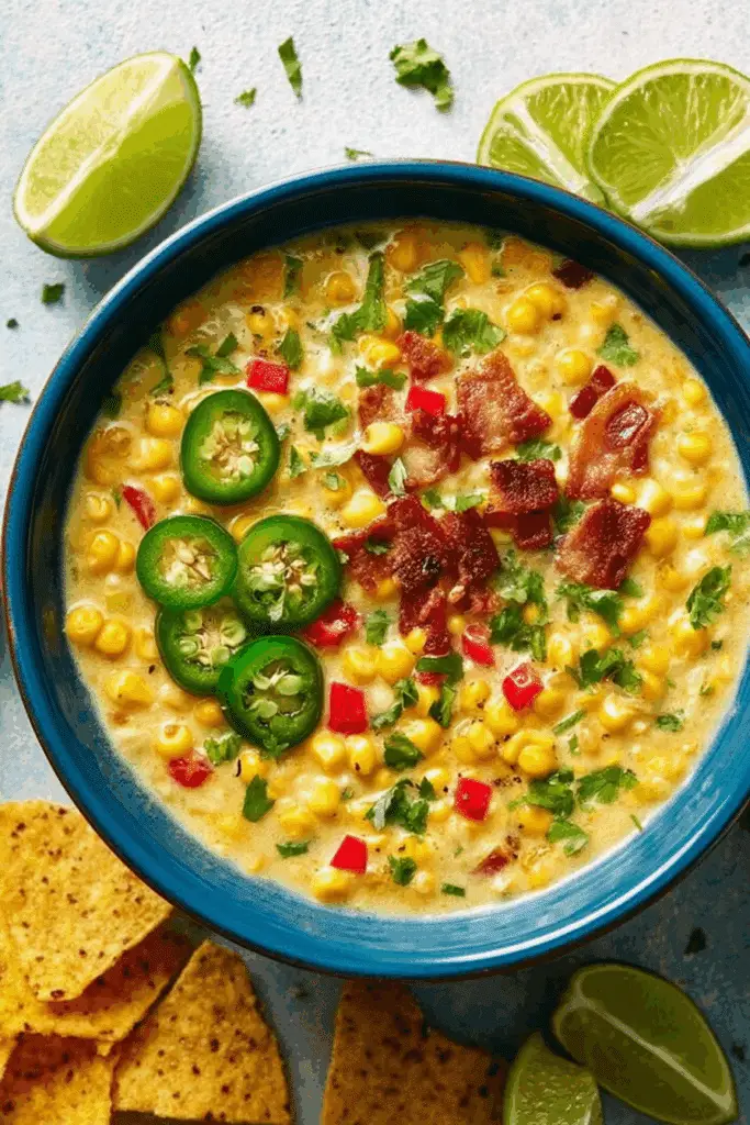 A: Yes! Sauté bacon and veggies in a large pot, add corn, liquid, and seasonings, and simmer for 30-40 minutes. Stir in cream and lime at the end.