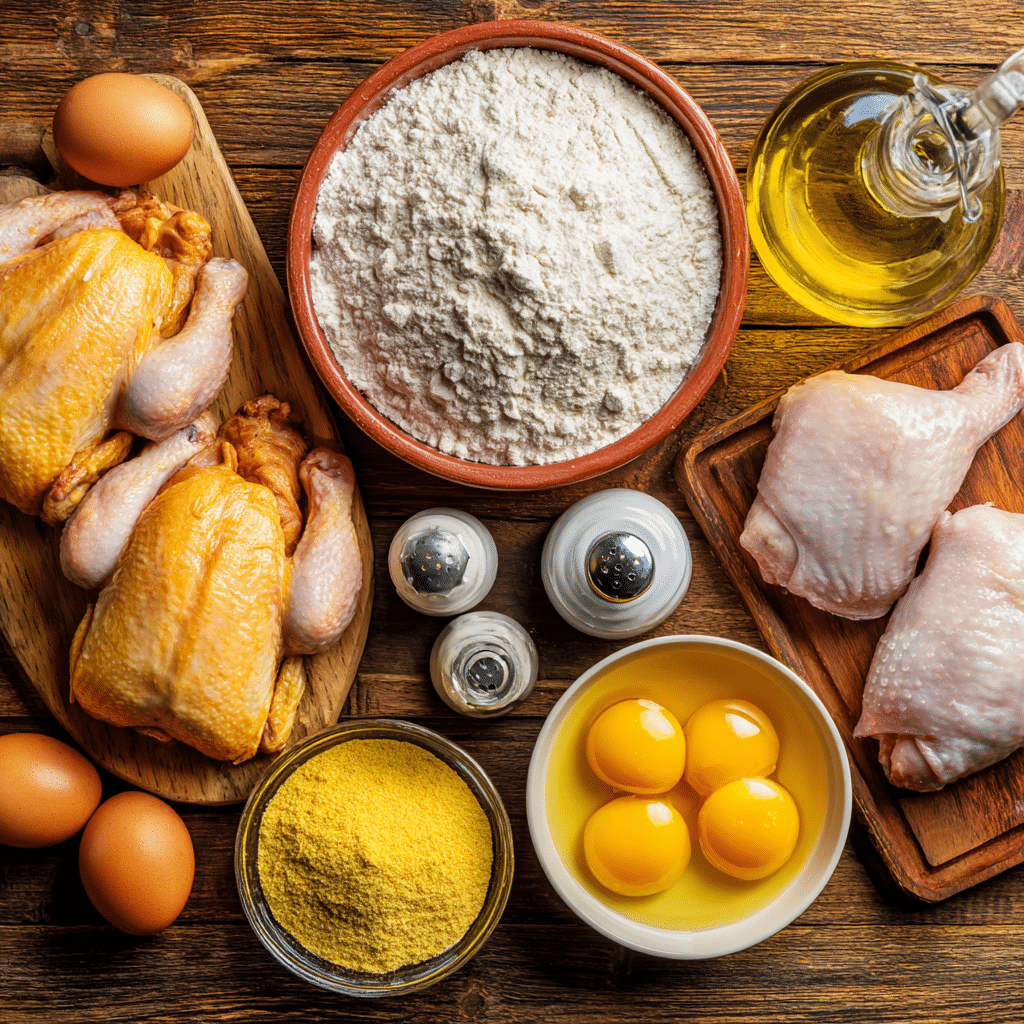 - Eggs: Help the flour stick to the chicken, creating a thick, crunchy layer.