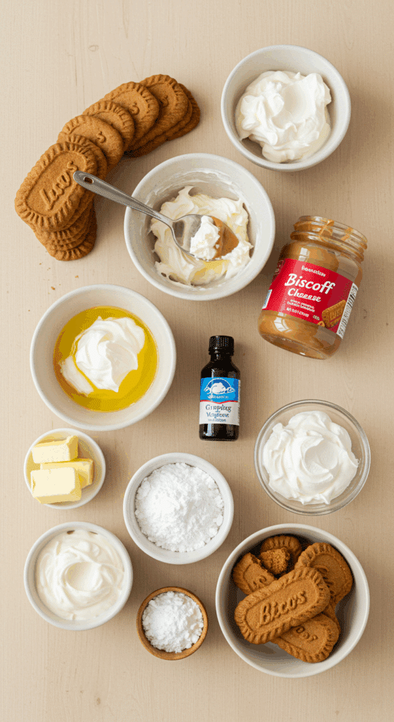 - Biscoff Cookies (165 g, ~20 cookies): Provide a spiced, caramelized crust base.