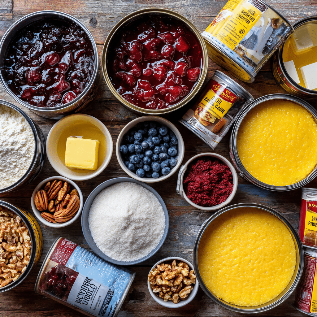 • Yellow Cake Mix: Creates a crumbly, golden topping that bakes into a cobbler-like crust.